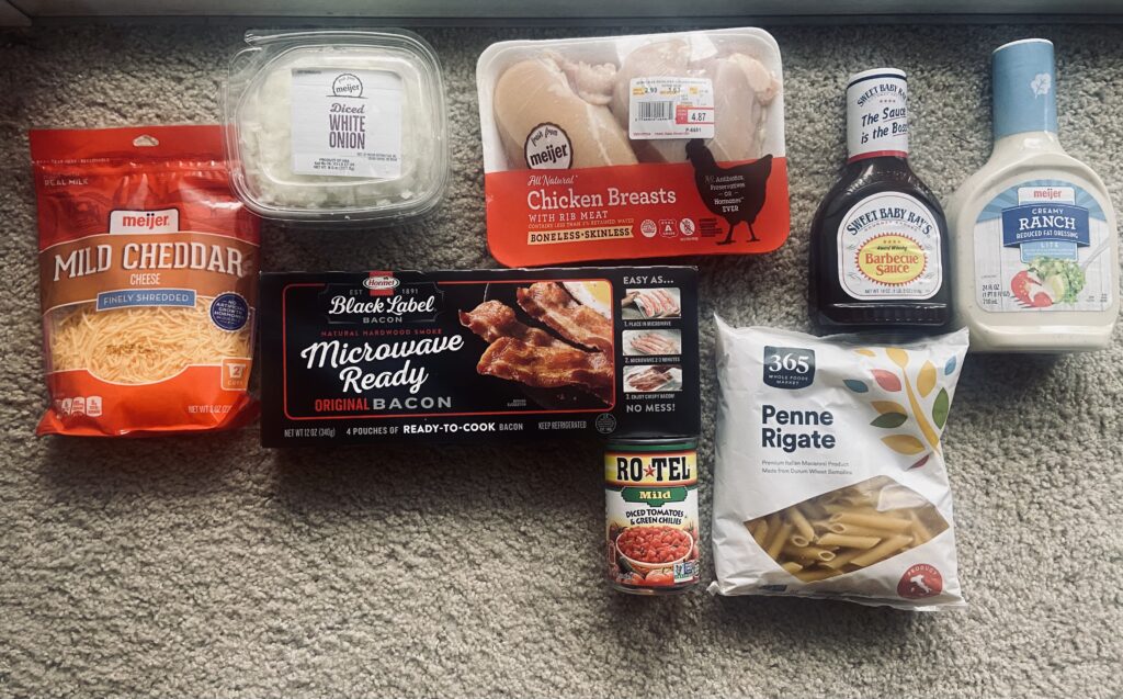 We had the normal culprits of food you would find at a barbeque…burgers, hot dogs, ribs..so I wanted to make a side dish that still followed the theme. I ended up making a Chicken Bacon Ranch Casserole.