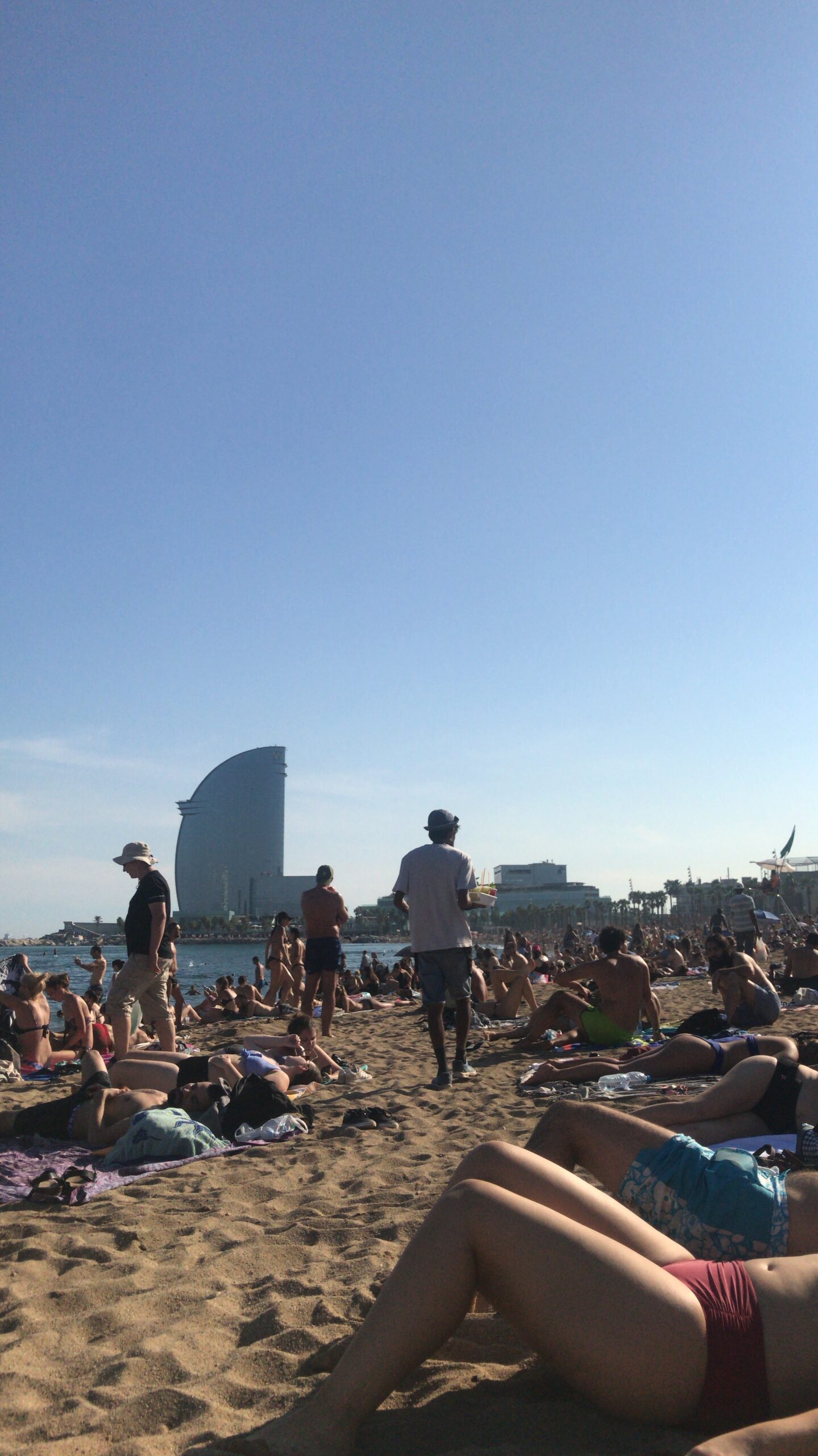 It is a beautiful beach that had views of the ocean, the city behind you, and The W Hotel down the shoreline.