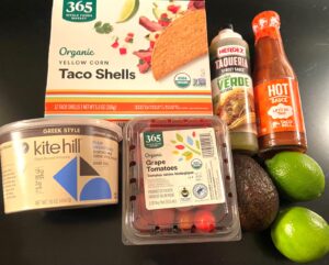 Once tempeh is complete, adding toppings is the next best part. I love hard shells to give the tacos the crunch. While there are many sour cream alternatives for vegans, I happened to have Kite Hill‘s Vegan Greek Yogurt in my fridge and it did just the job replacing sour cream. Peep picture below…I think I may have went a little overboard on the sauces!