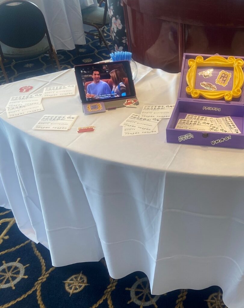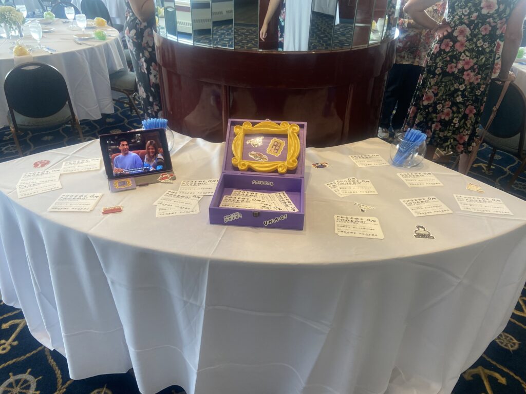 Overall, I had a super fun time making this and it was a hit at the shower. In addition to the box and cards, I sprinkled some of the extra stickers on the table. I also had the “Phoebe/Phoebo” scene on loop on my iPad in case people didn’t understand what this was all about.
