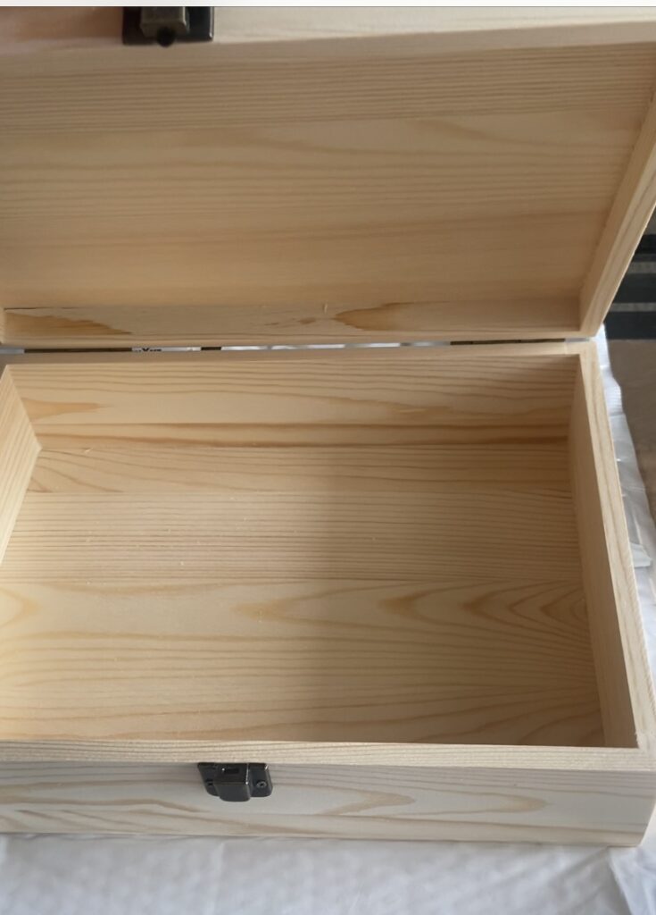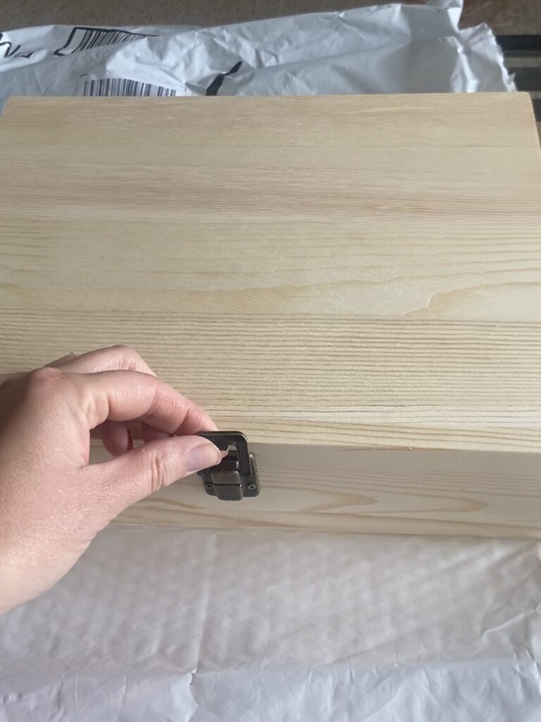 I will have everything linked in one spot at the bottom of this post, but for the box, I ultimately went with this wooden box. It was 12″ x 9.2″ x 3.3″. It is meant to be for a jewelry box, but it seemed perfect for this.
