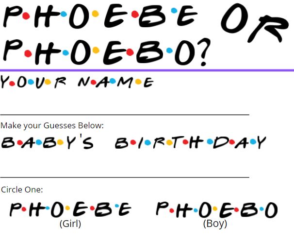 We decided to make it a guessing game out what gender you thought the baby was: Phoebe (girl) or Phoebo (boy).