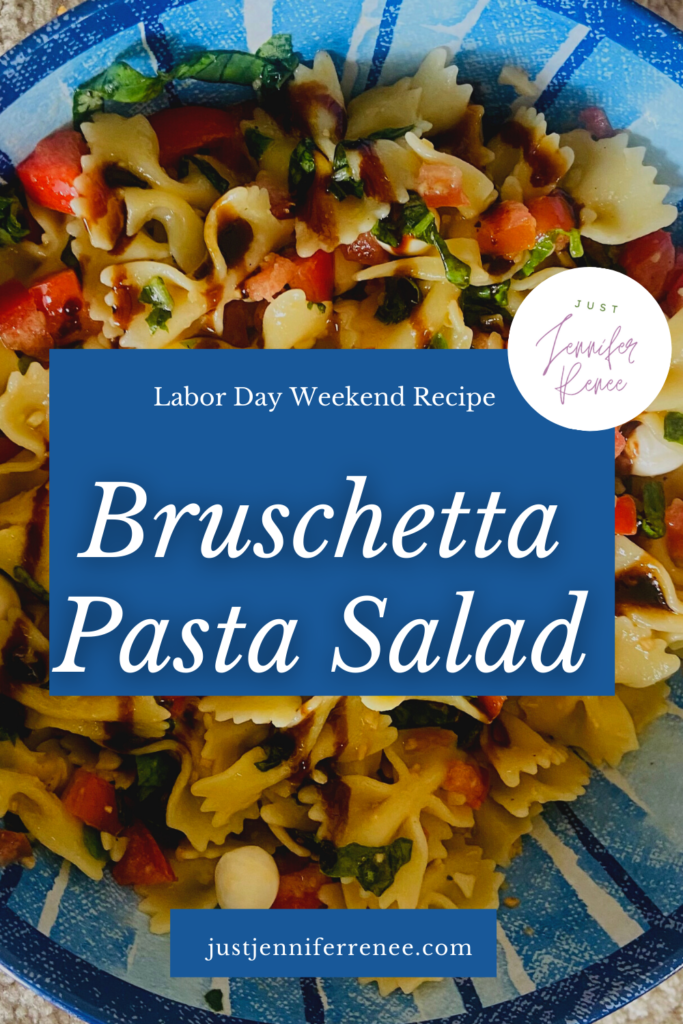 You can save this recipe for later on Pinterest by clicking here: Bruschetta Pasta Salad Pin